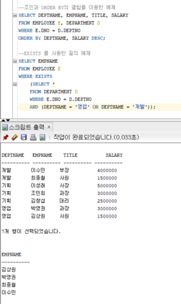 EXISTS를 사용한 질의 예제