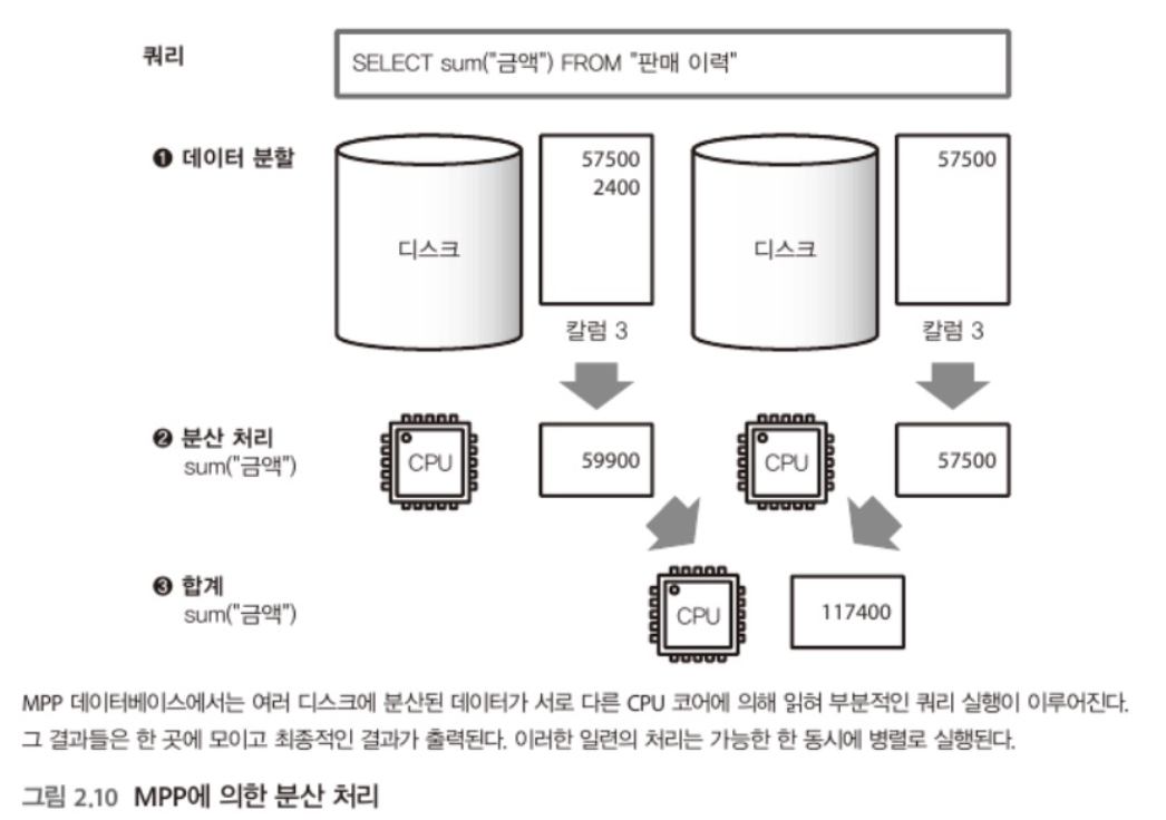 - ๋ง์ ์์ ๋ฐ์ดํฐ๋ฅผ ์ฒ๋ฆฌํ๊ธฐ ์ํด์๋ โ์ด ์งํฅ ์คํ ๋ฆฌ์งโ๊ฐ ํ์ํ๋ค. MPP ๋ฐ์ดํฐ๋ฒ ์ด์ค๋ฅผ ์ฌ์ฉํ๋ฉด ๋ณ๋ ฌํ์ ์ํ ์ฟผ๋ฆฌ ๊ณ ์ํ๊ฐ ๊ฐ๋ฅํ๋ค.
