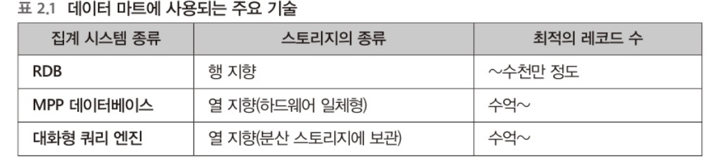 - ํ ์ด๋ธ์ ๋ด์ฉ์ด ์์ผ๋ฉด โRDBโ๋ฅผ ๋ฐ์ดํฐ ๋งํธ๋ก ์ฌ์ฉ๊ฐ๋ฅ ๊ทธ๋ ์ง ์์ผ๋ฉด โMPP ๋ฐ์ดํฐ๋ฒ ์ด์คโ๋ฑ์ ์ด์ฉํด โ์ด ์งํฅโ์ผ๋ก ๋ฐ์ดํฐ๊ฐ ๋ณด๊ด๋๋๋ก ํ๋ ๊ฒ์ด ์ข๋ค.
